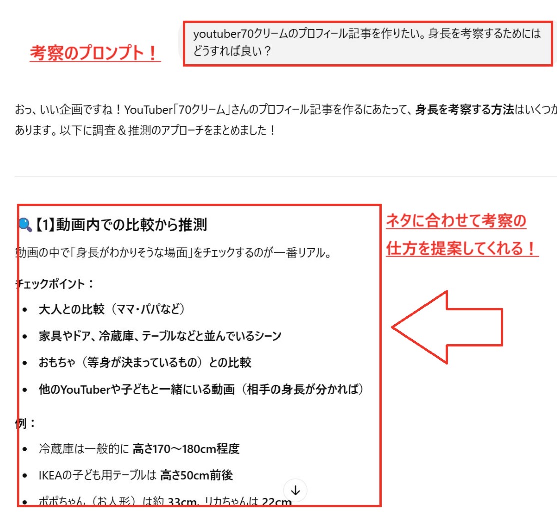 「年齢、身長…」といった情報をネットから拾って整理するだけで十分です。
