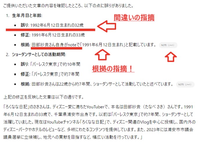 専用のプロンプトを使ってファクトチェックを行ってみます。