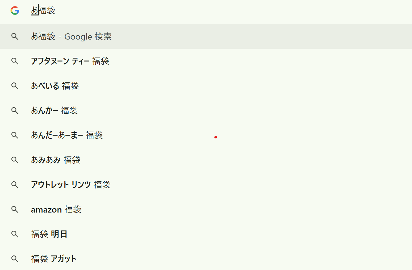 そのまま同じように検索窓に「あ福袋 アウトレット」といったように入れてみます。